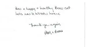 "We wanted to let you know how grateful we are for the care you provided for our sweet boy Boomer! I truly am thankful for the kindness you showed him and even us after his passing. It is great to know that there are still people out there that really care about our babies and the families. It has meant the world to us!"