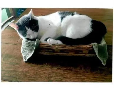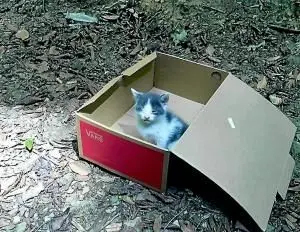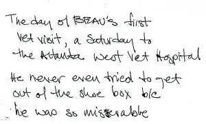 "The day of BEAU's first vet visit, a Saturday to the Atlanta West Veterinary Hospital. He never even tried to get out of the shoe box b/c he was so miserable."