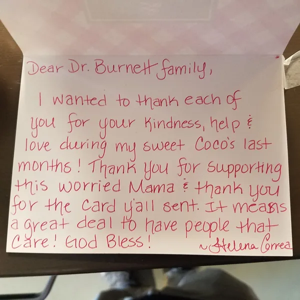 " I wanted to thank each of you for your kindness, help & love during my sweet Coco's last months! Thank you for supporting this worried Mama & thank you for the card ya'll sent. It means a great deal to have people that care! God Bless!- Helena Correa