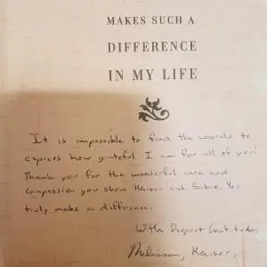 It is impossible to find the words to express how grateful I am for all of you! Thank you for the wonderful care and compassion you show Kaiser and Sabre. You truly make a difference.